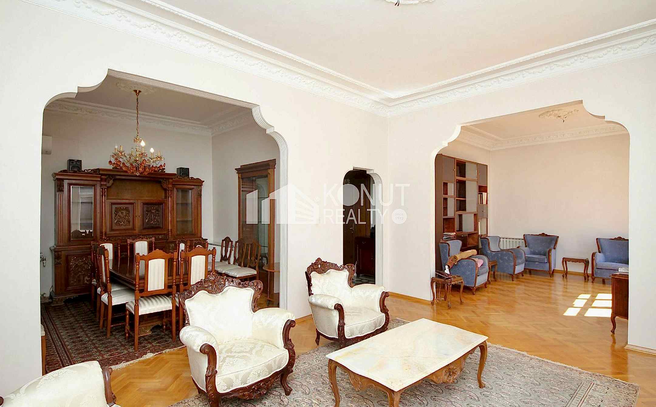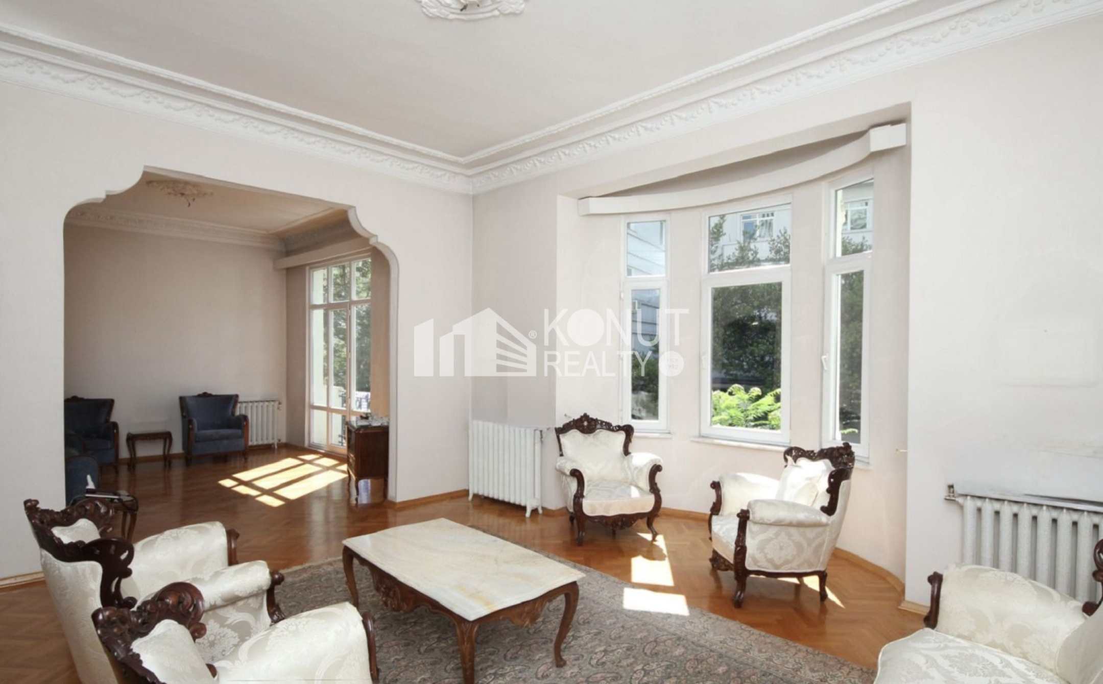 Yüksek tavanları ve ferah odaları sayesinde gün boyu aydınlık ve etkileyici bir atmosfere sahip olan daire, kullanışlı planıyla geniş aileler ve temsil gücü yüksek bir yaşam arayanlar için ideal.